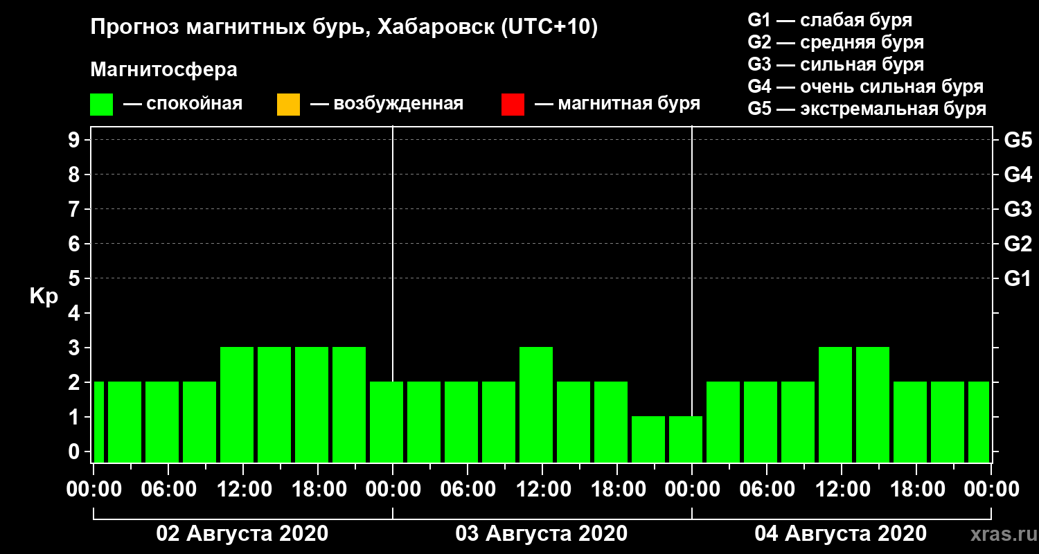 Прогноз магнитных бурь в Хабаровске — 2 августа 2020 года