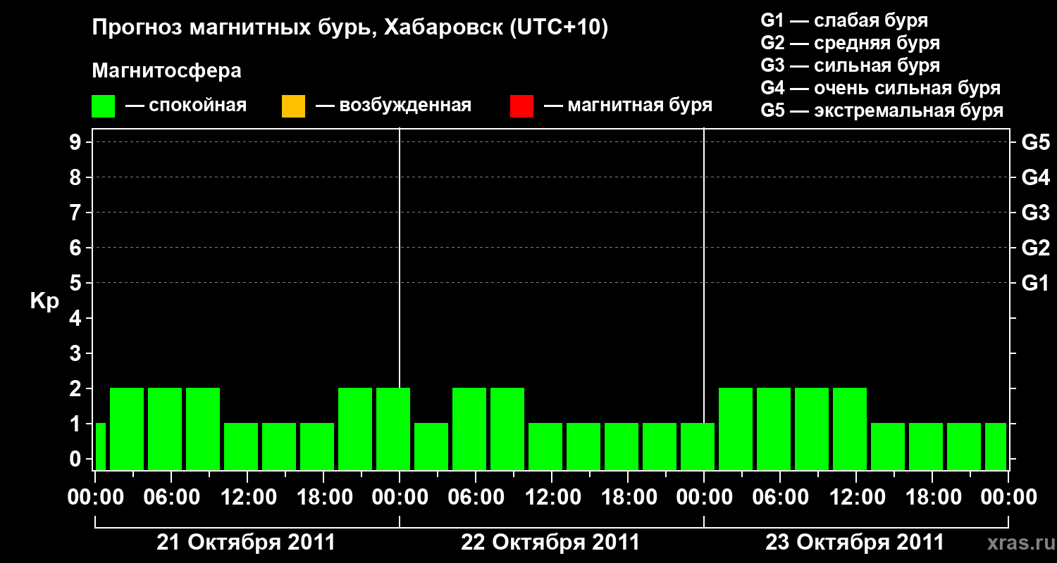 Прогноз магнитных бурь в Хабаровске — 21 октября 2011 года