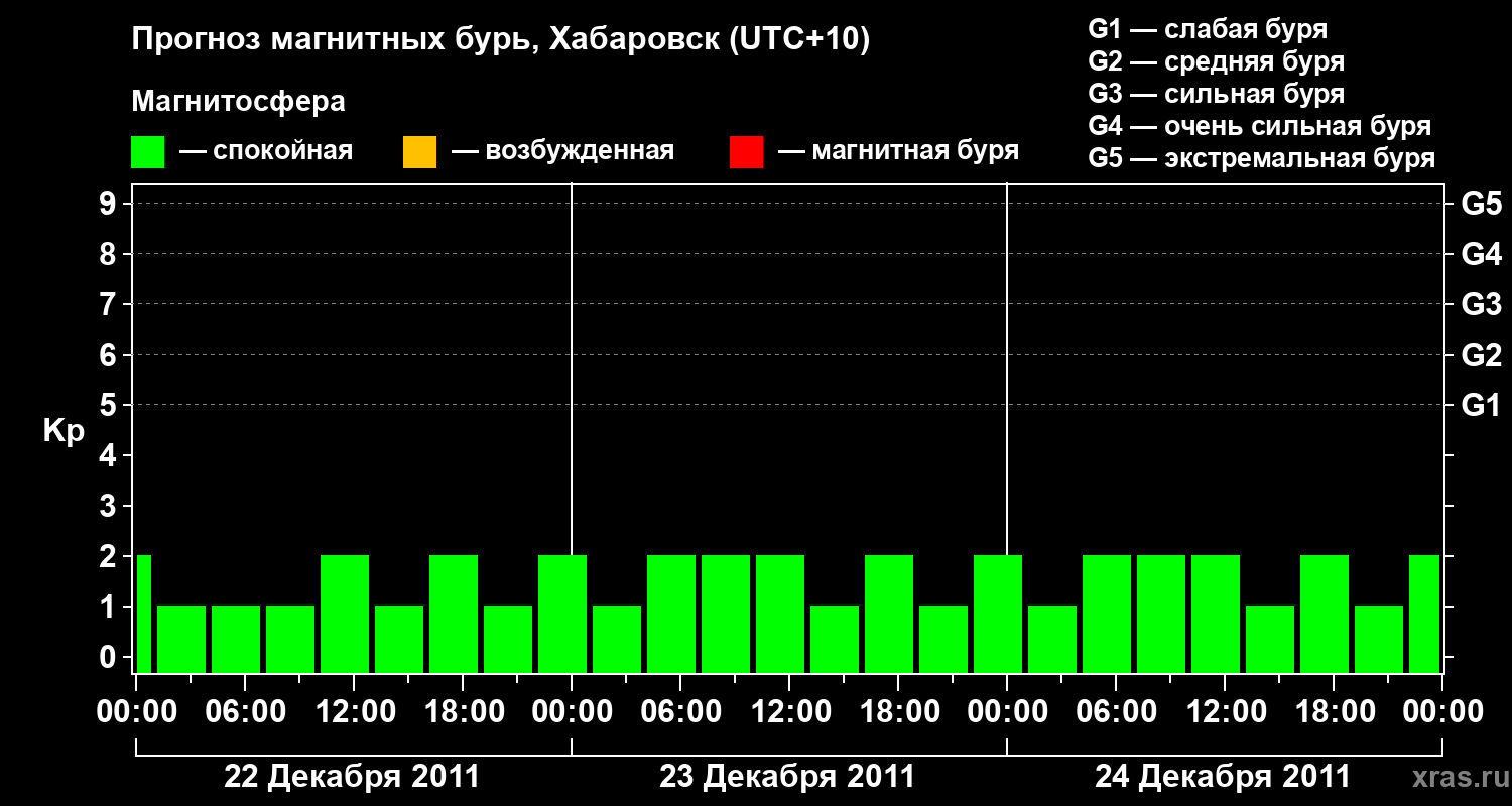 Прогноз магнитных бурь в Хабаровске на 22 декабря 2011 года