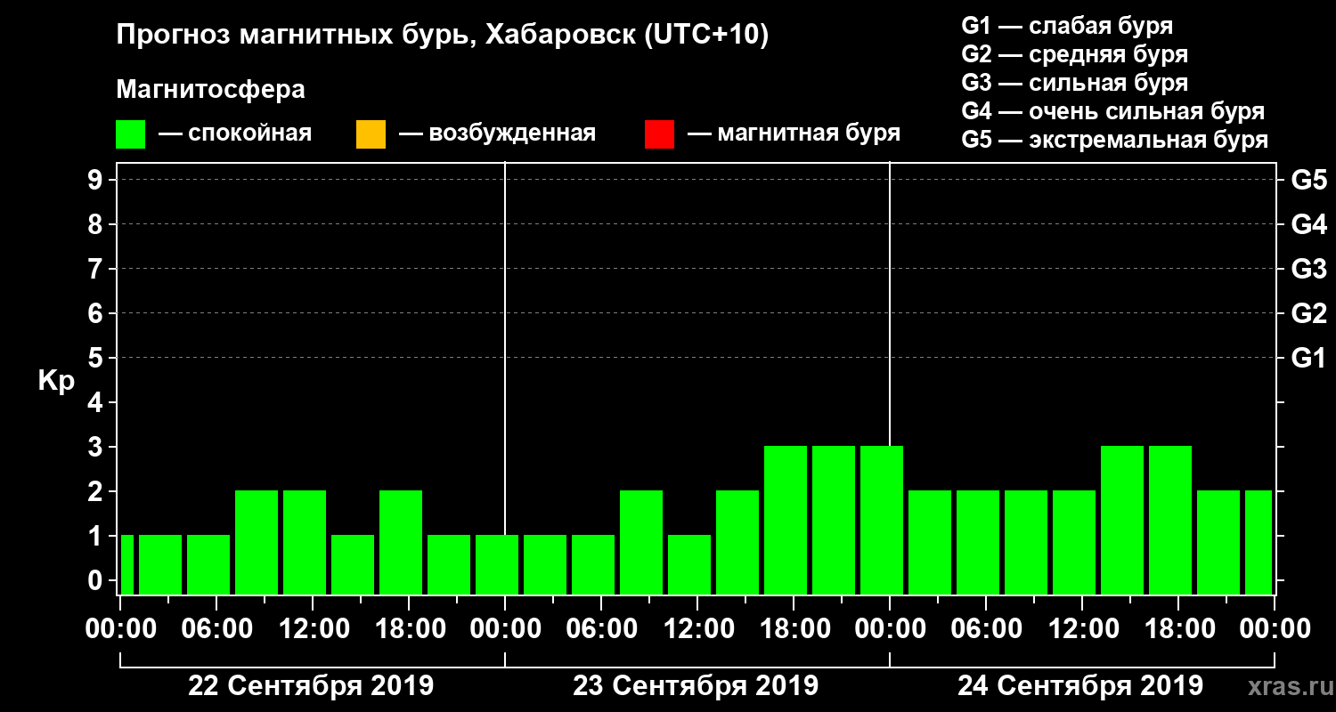 Прогноз магнитных бурь в Хабаровске — 22 сентября 2019 года