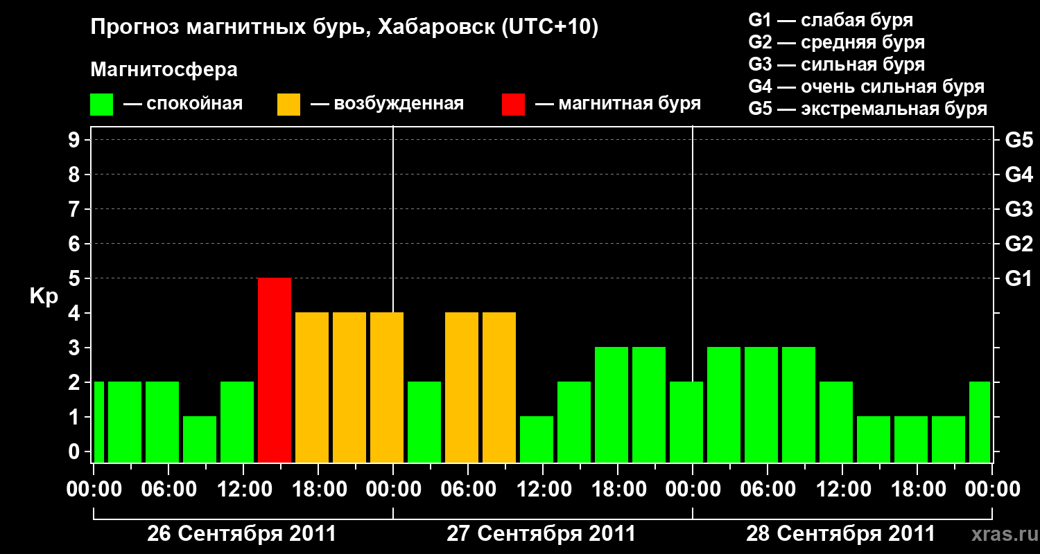 Прогноз магнитных бурь в Хабаровске — 26 сентября 2011 года