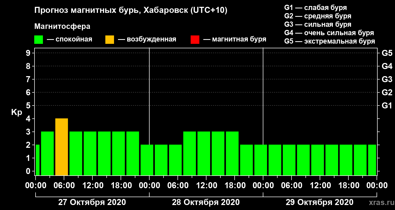 Прогноз магнитных бурь в Хабаровске — 27 октября 2020 года