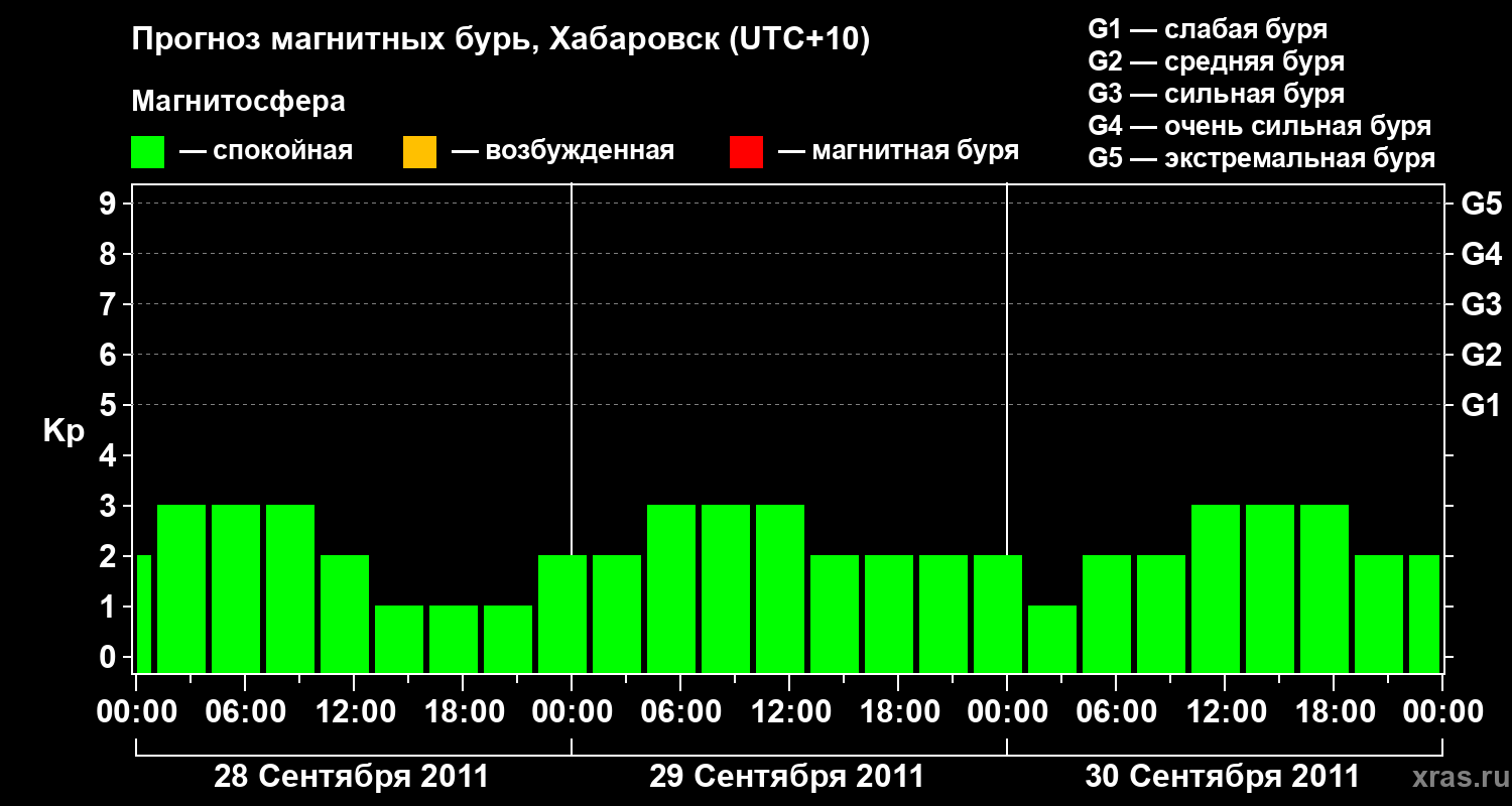 Прогноз магнитных бурь в Хабаровске — 28 сентября 2011 года