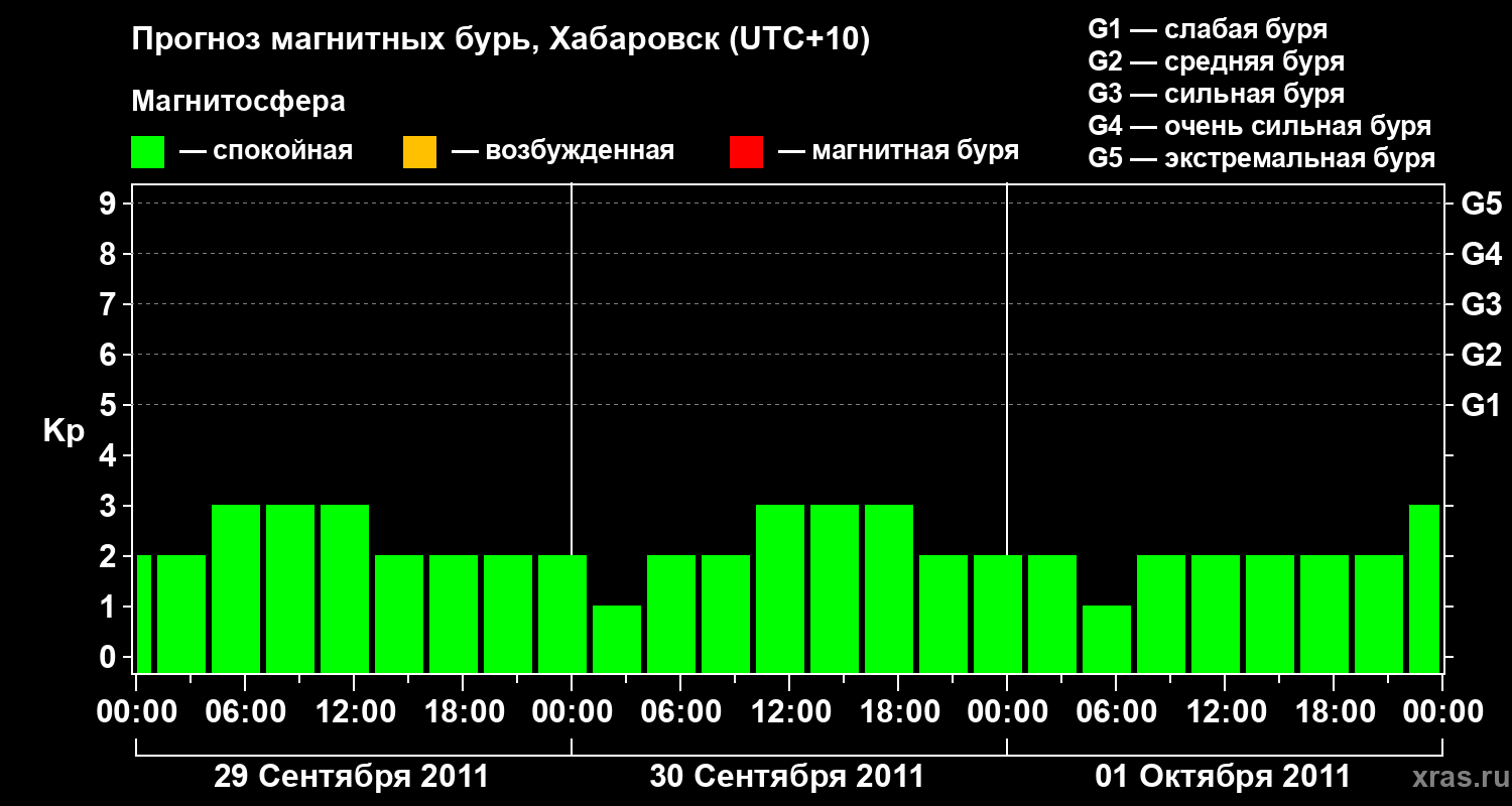 Прогноз магнитных бурь в Хабаровске — 29 сентября 2011 года