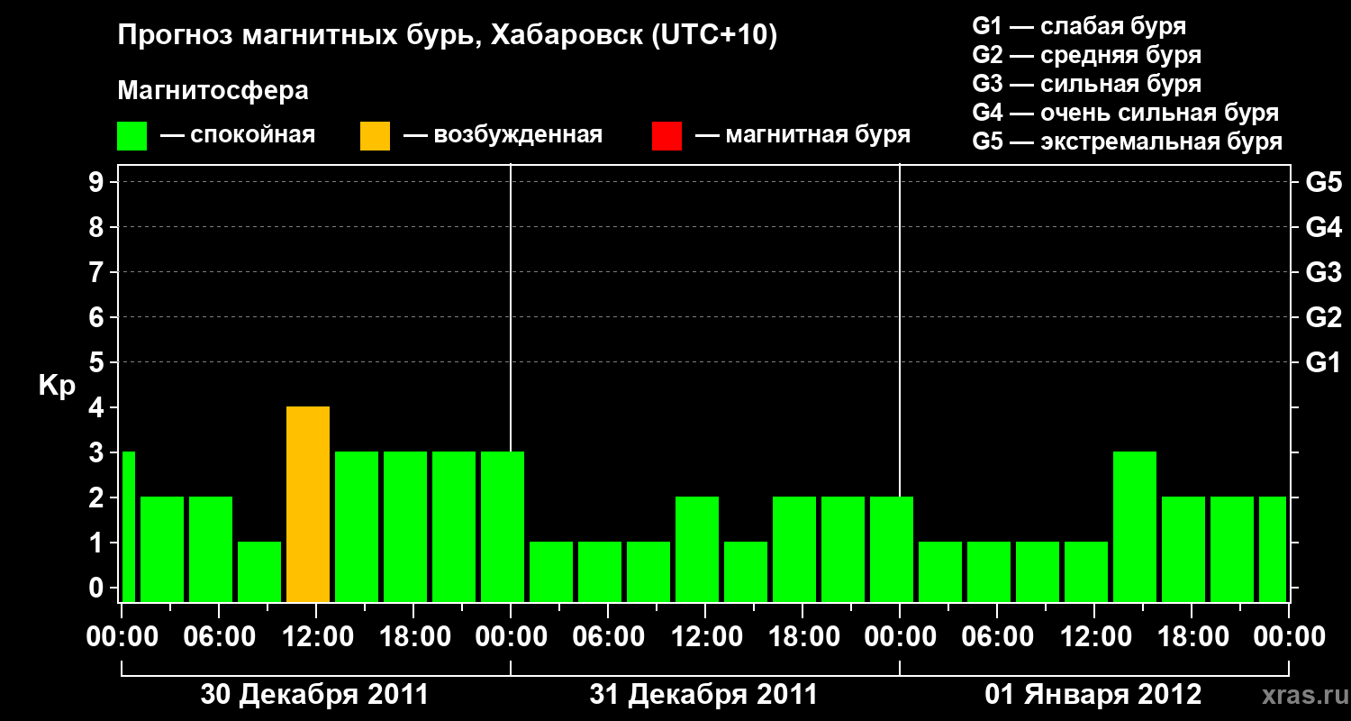 Прогноз магнитных бурь в Хабаровске — 30 декабря 2011 года
