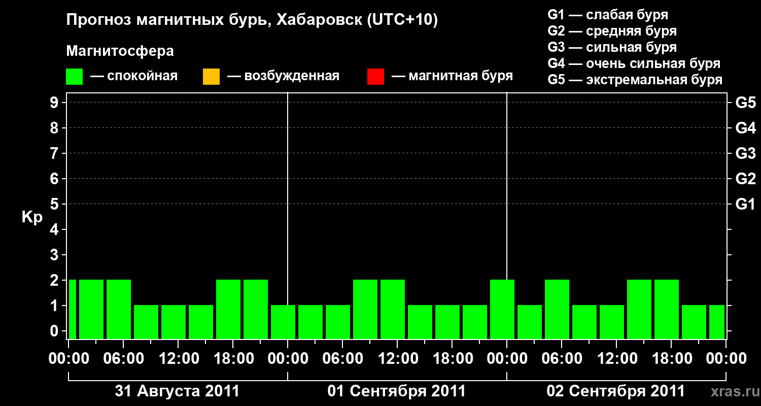 Прогноз магнитных бурь в Хабаровске — 31 августа 2011 года