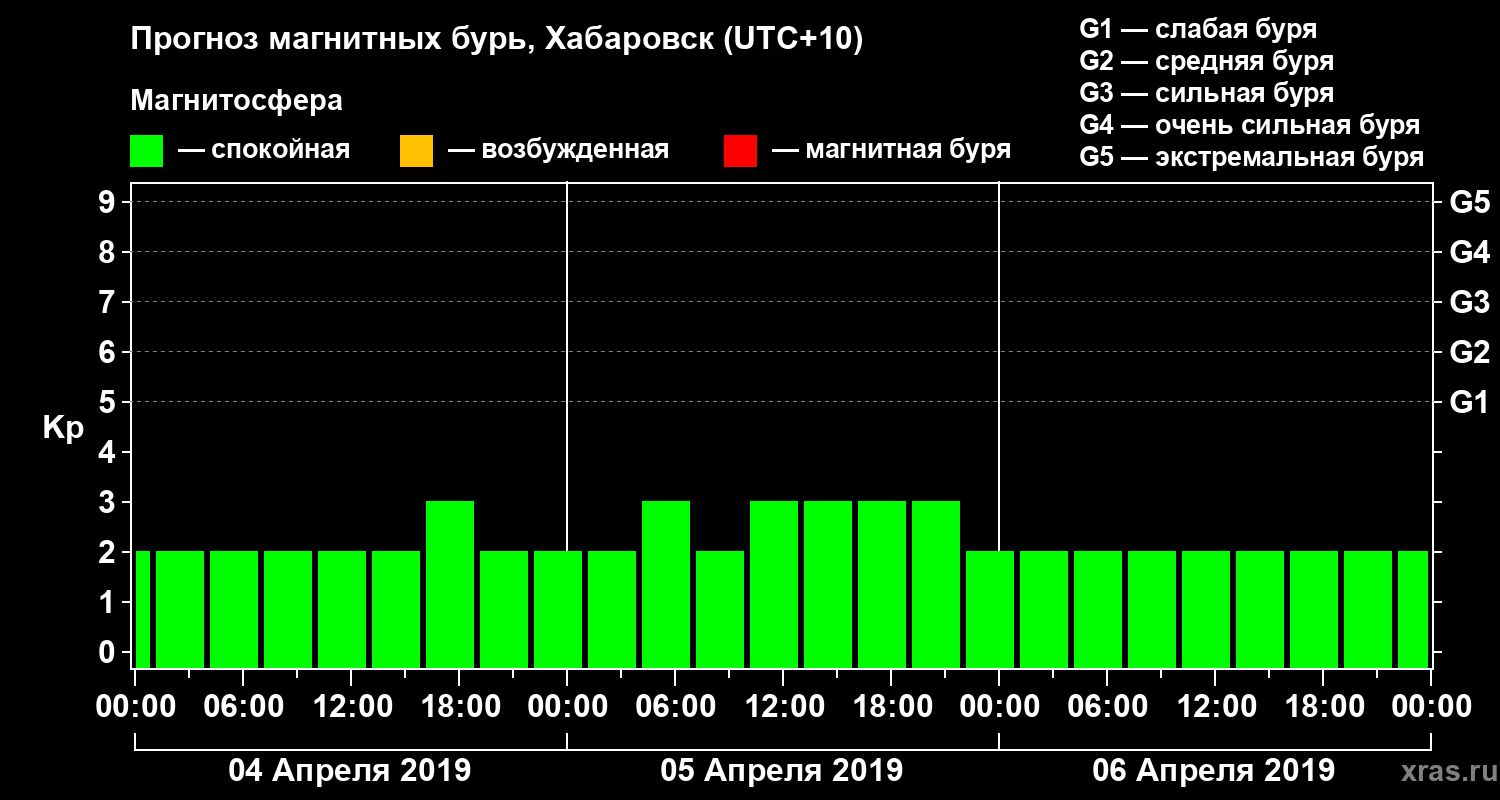 Прогноз магнитных бурь в Хабаровске на 4 апреля 2019 года