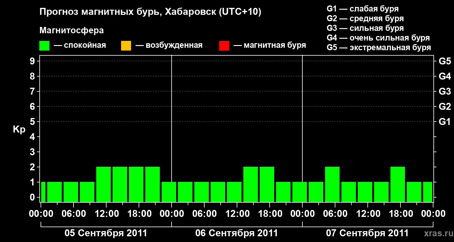 Прогноз магнитных бурь в Хабаровске — 5 сентября 2011 года