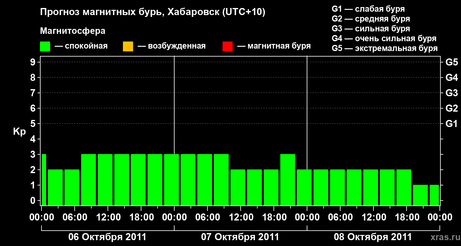 Прогноз магнитных бурь в Хабаровске — 6 октября 2011 года