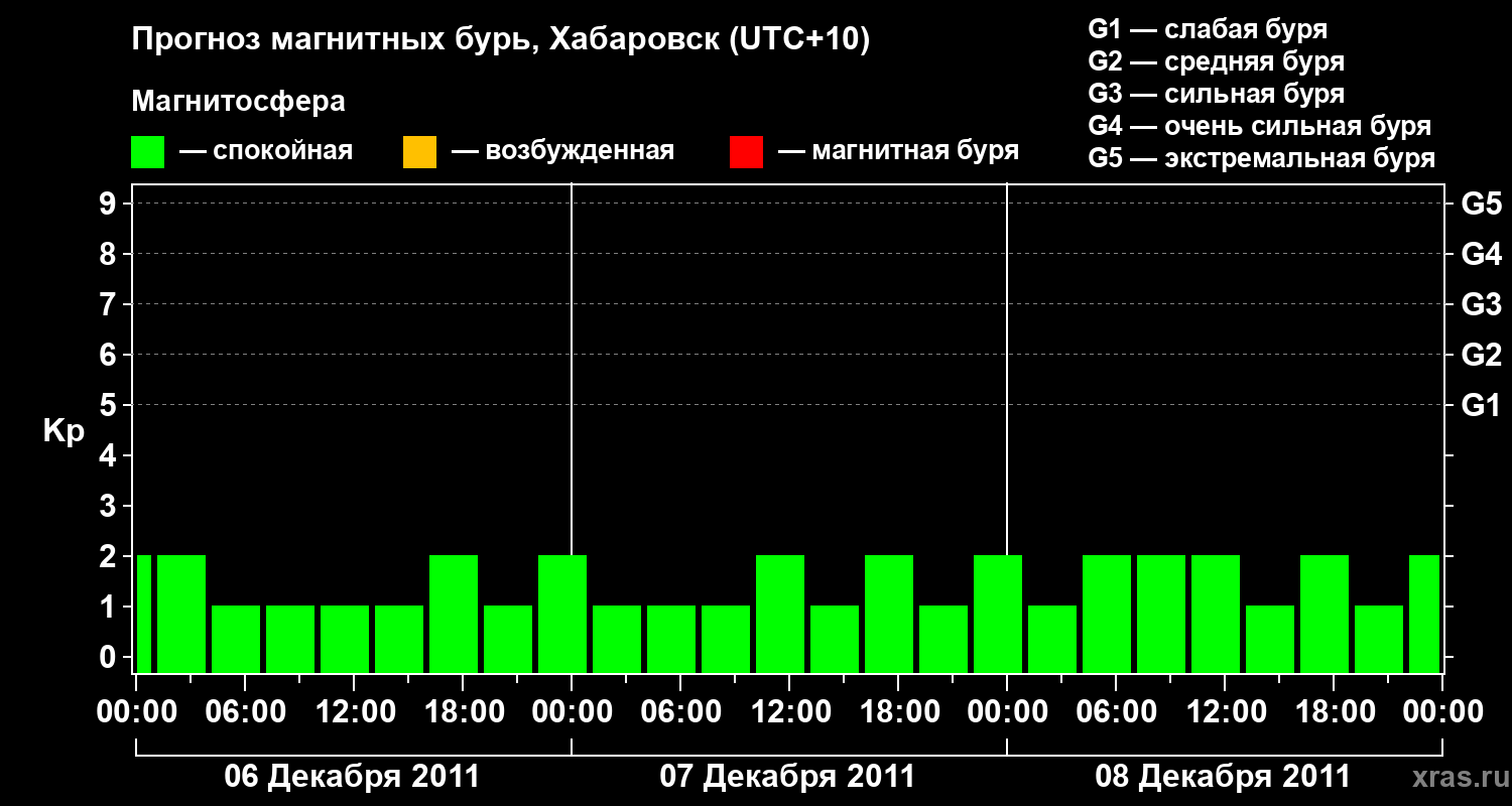 Прогноз магнитных бурь в Хабаровске — 6 декабря 2011 года