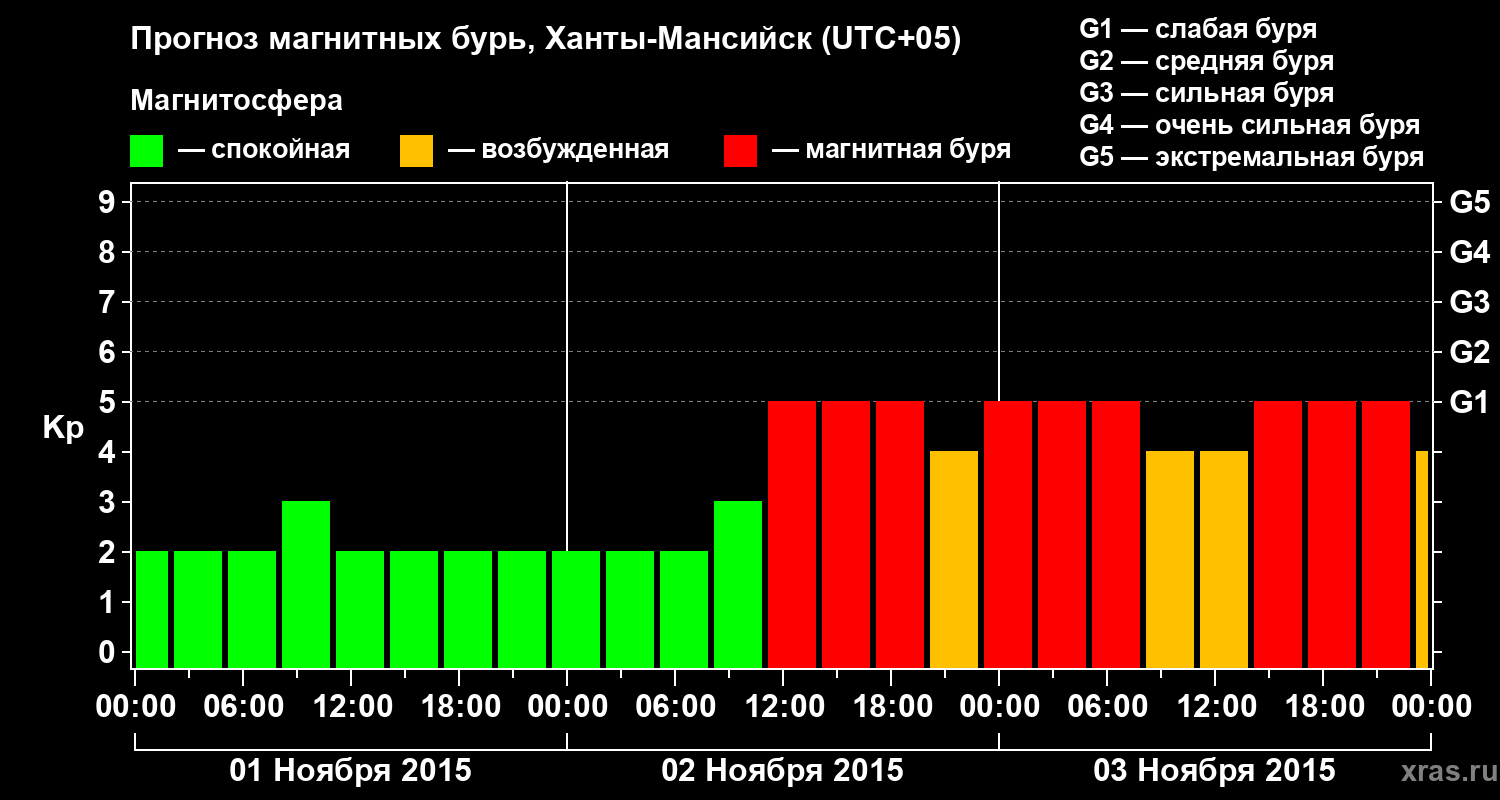 Прогноз магнитных бурь в Ханты-Мансийске — 1 ноября 2015 года