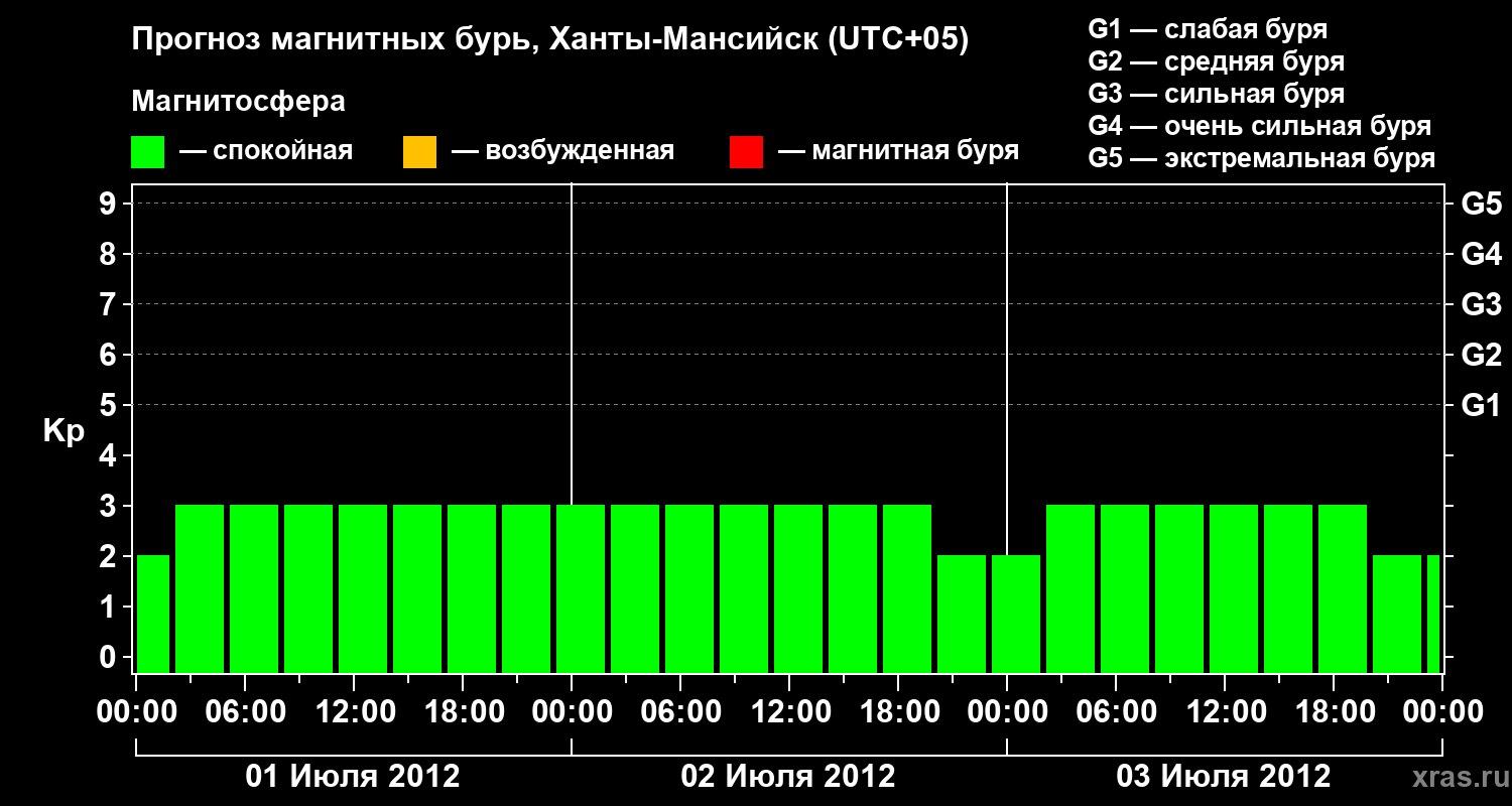 Прогноз магнитных бурь в Ханты-Мансийске — 1 июля 2012 года
