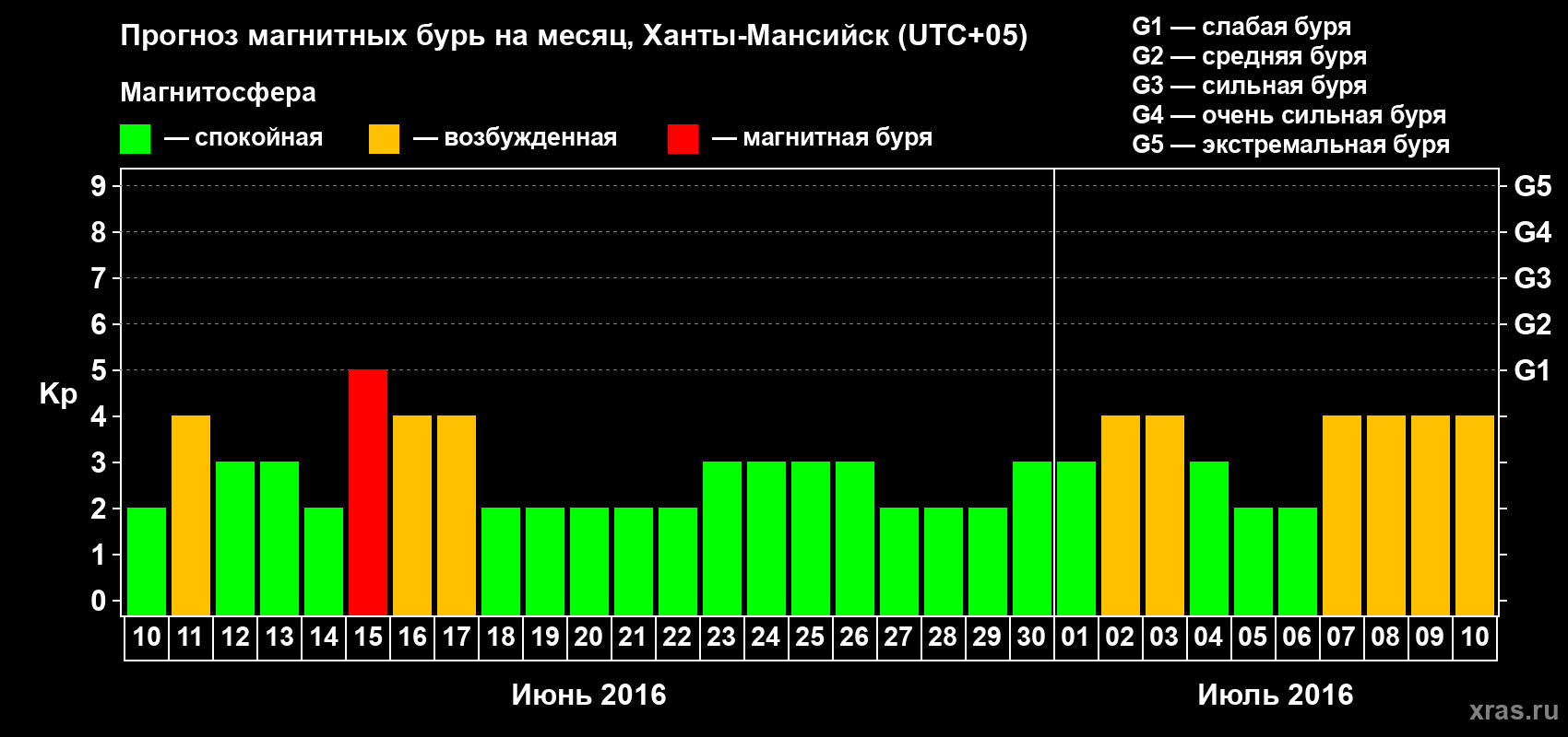 Прогноз магнитных бурь в Ханты-Мансийске — 10 июня 2016 года