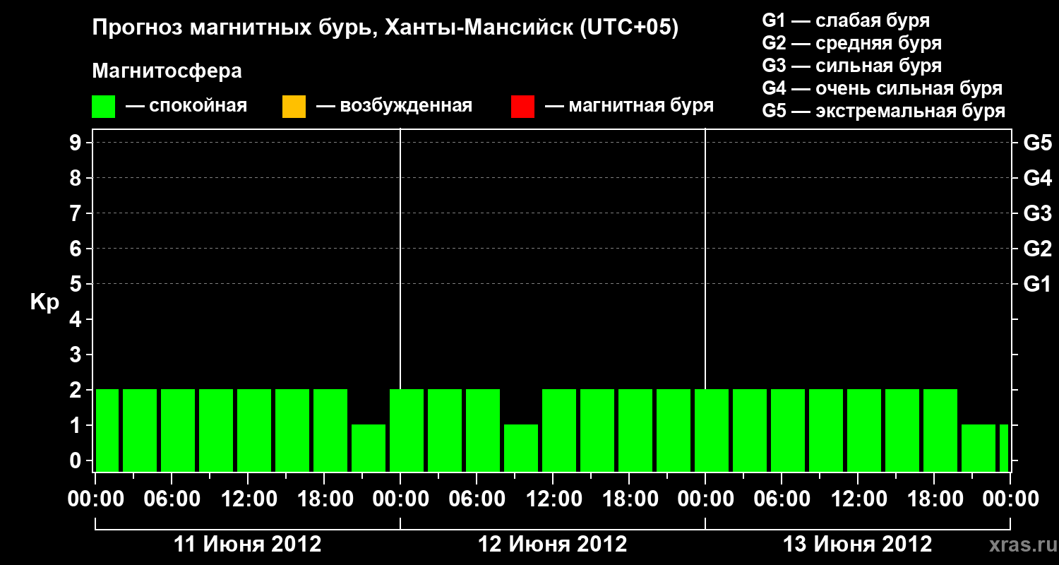 Прогноз магнитных бурь в Ханты-Мансийске — 11 июня 2012 года