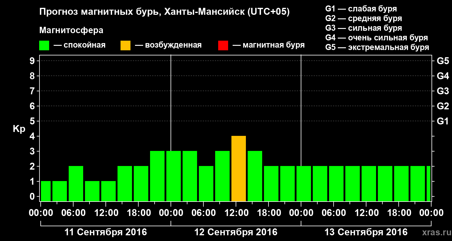Прогноз магнитных бурь в Ханты-Мансийске — 11 сентября 2016 года