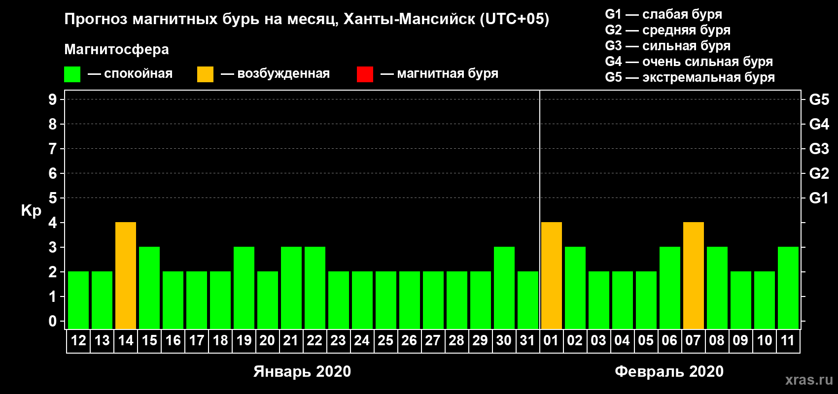 Прогноз магнитных бурь в Ханты-Мансийске — 12 января 2020 года