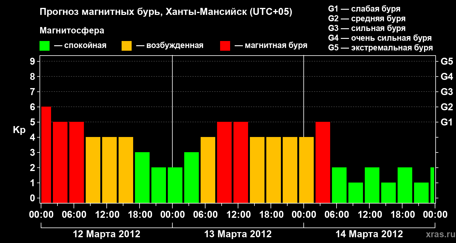 Прогноз магнитных бурь в Ханты-Мансийске на 12 марта 2012 года