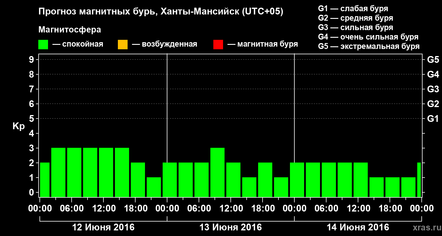 Прогноз магнитных бурь в Ханты-Мансийске на 12 июня 2016 года