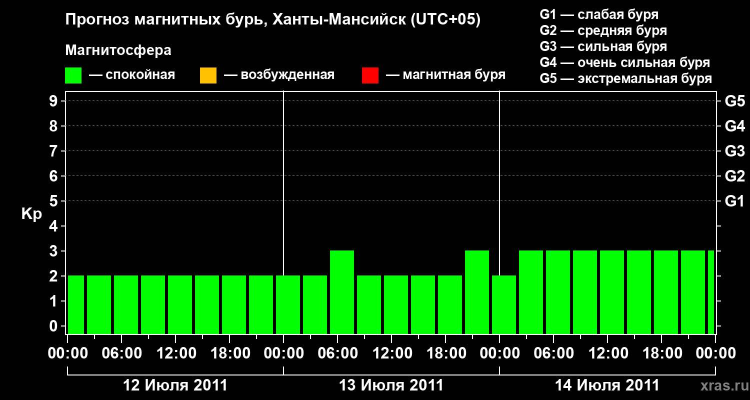 Прогноз магнитных бурь в Ханты-Мансийске — 12 июля 2011 года