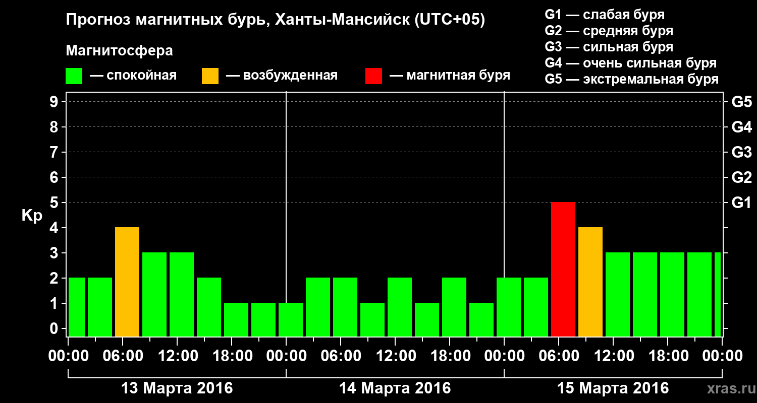 Прогноз магнитных бурь в Ханты-Мансийске — 13 марта 2016 года
