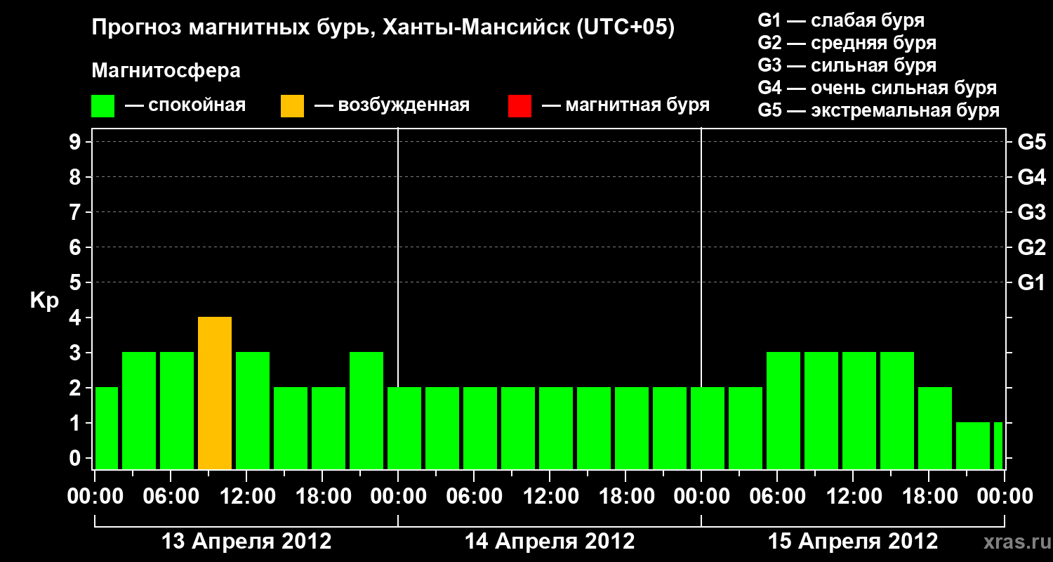 Прогноз магнитных бурь в Ханты-Мансийске на 13 апреля 2012 года