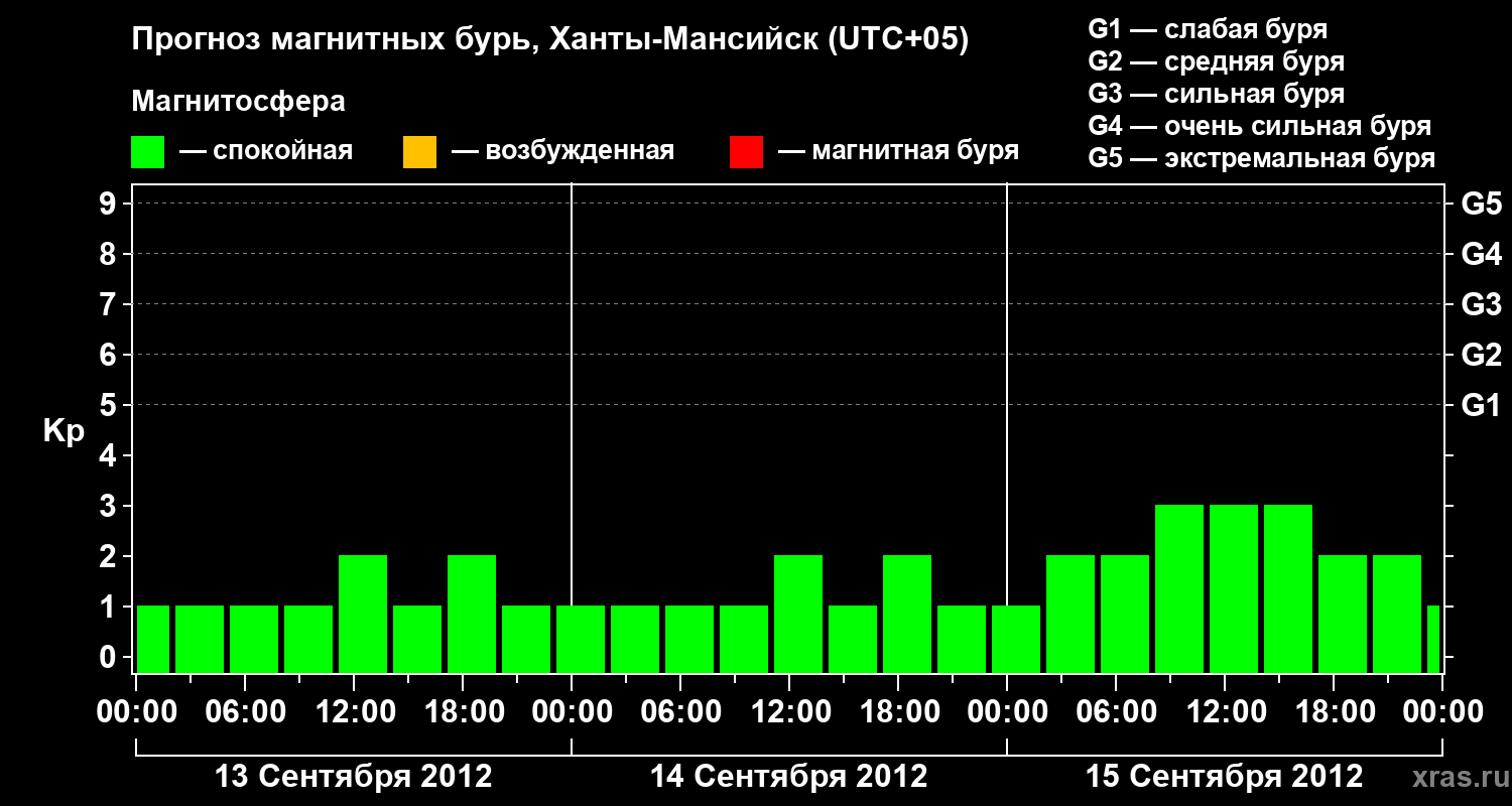 Прогноз магнитных бурь в Ханты-Мансийске — 13 сентября 2012 года