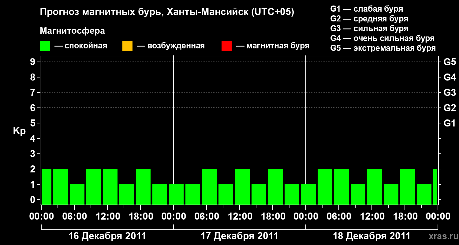 Прогноз магнитных бурь в Ханты-Мансийске — 16 декабря 2011 года