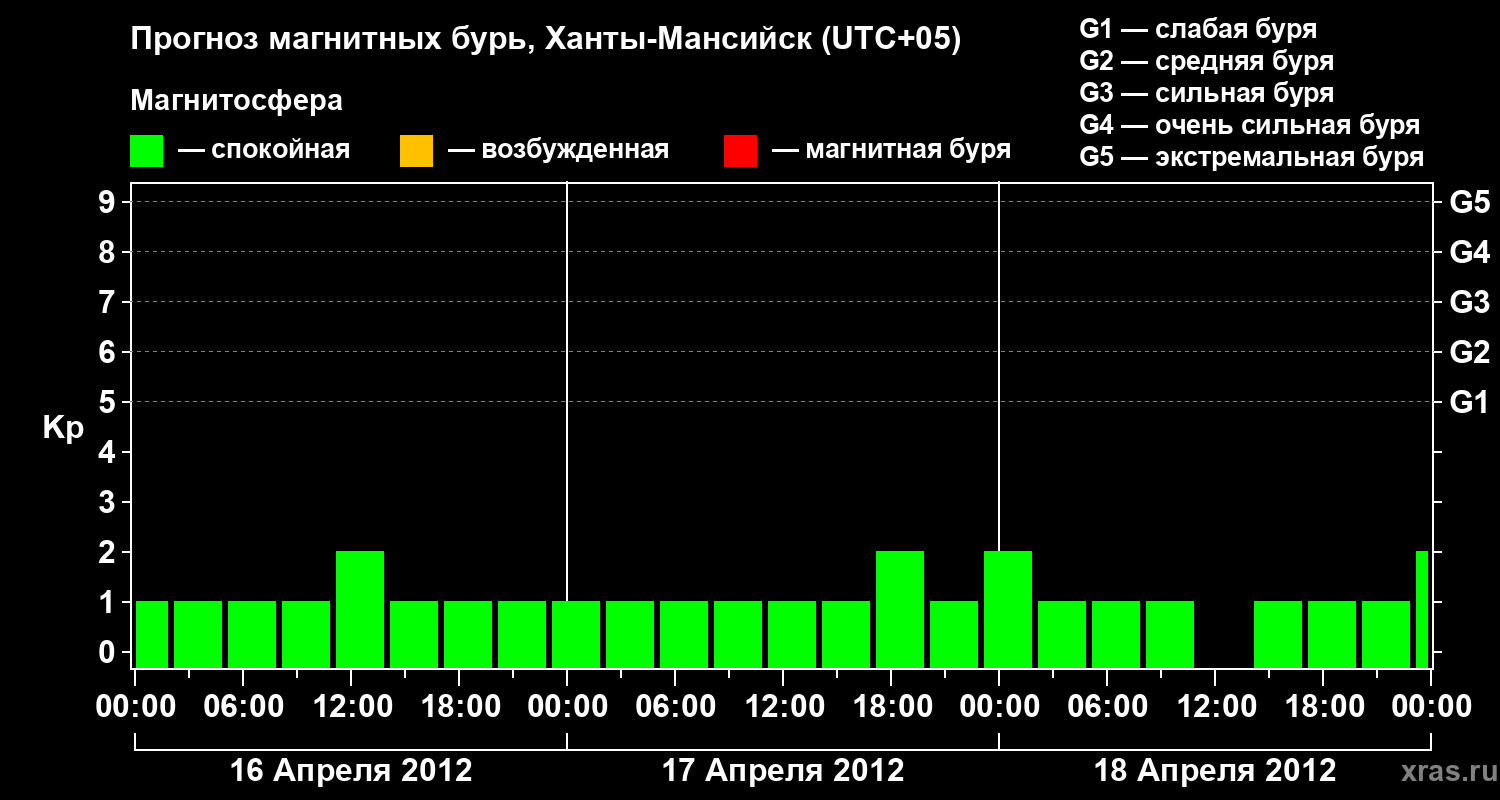 Прогноз магнитных бурь в Ханты-Мансийске на 16 апреля 2012 года