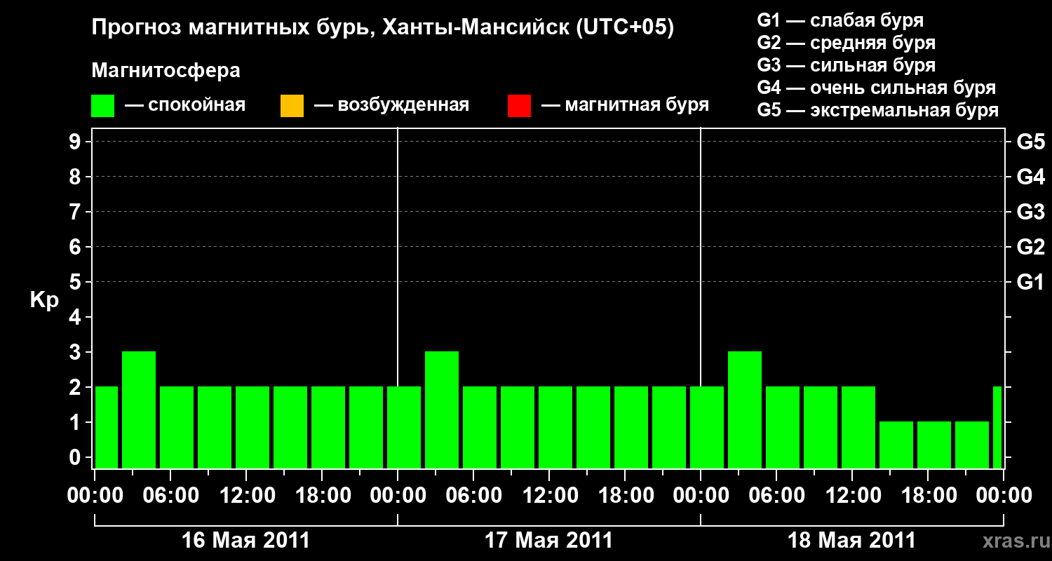 Прогноз магнитных бурь в Ханты-Мансийске — 16 мая 2011 года