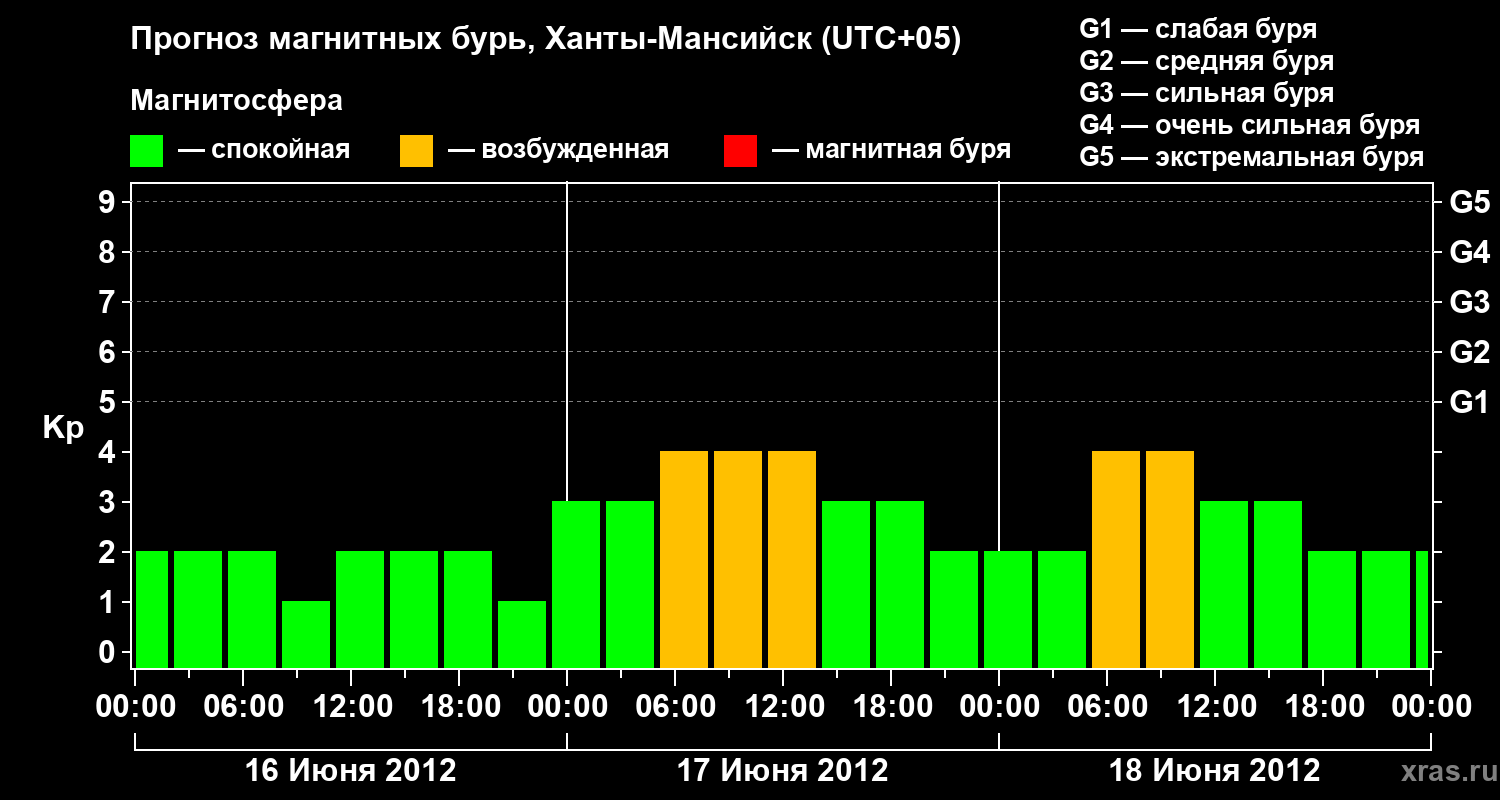 Прогноз магнитных бурь в Ханты-Мансийске — 16 июня 2012 года