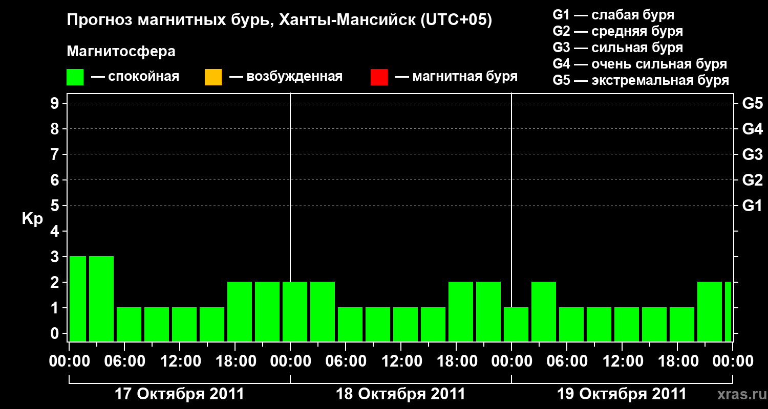 Прогноз магнитных бурь в Ханты-Мансийске — 17 октября 2011 года