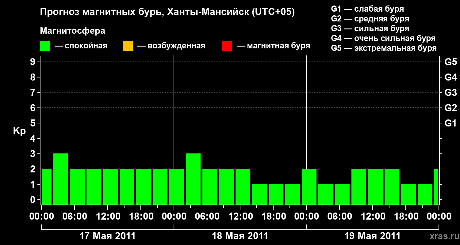 Прогноз магнитных бурь в Ханты-Мансийске — 17 мая 2011 года