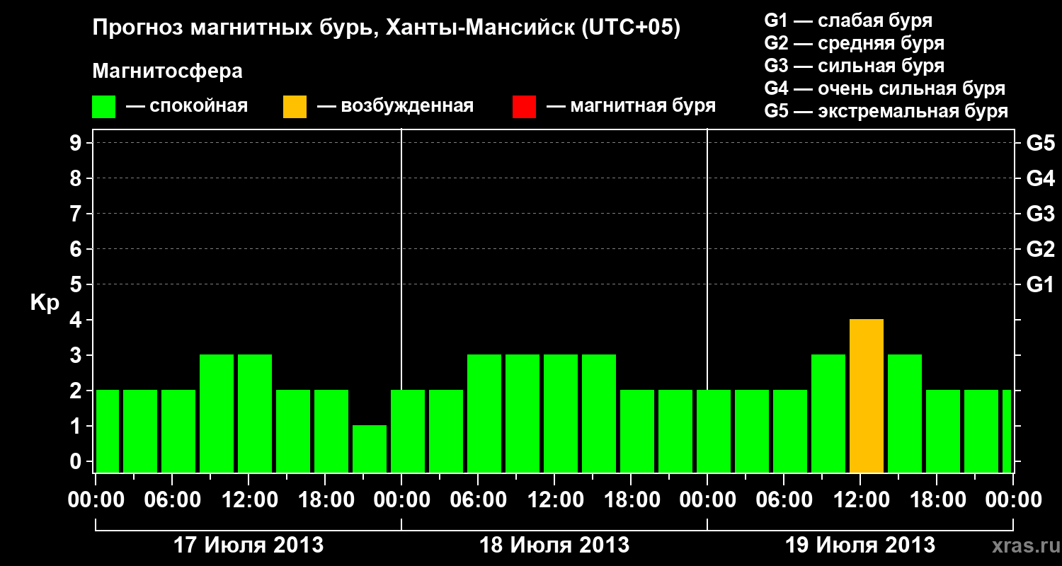 Прогноз магнитных бурь в Ханты-Мансийске — 17 июля 2013 года