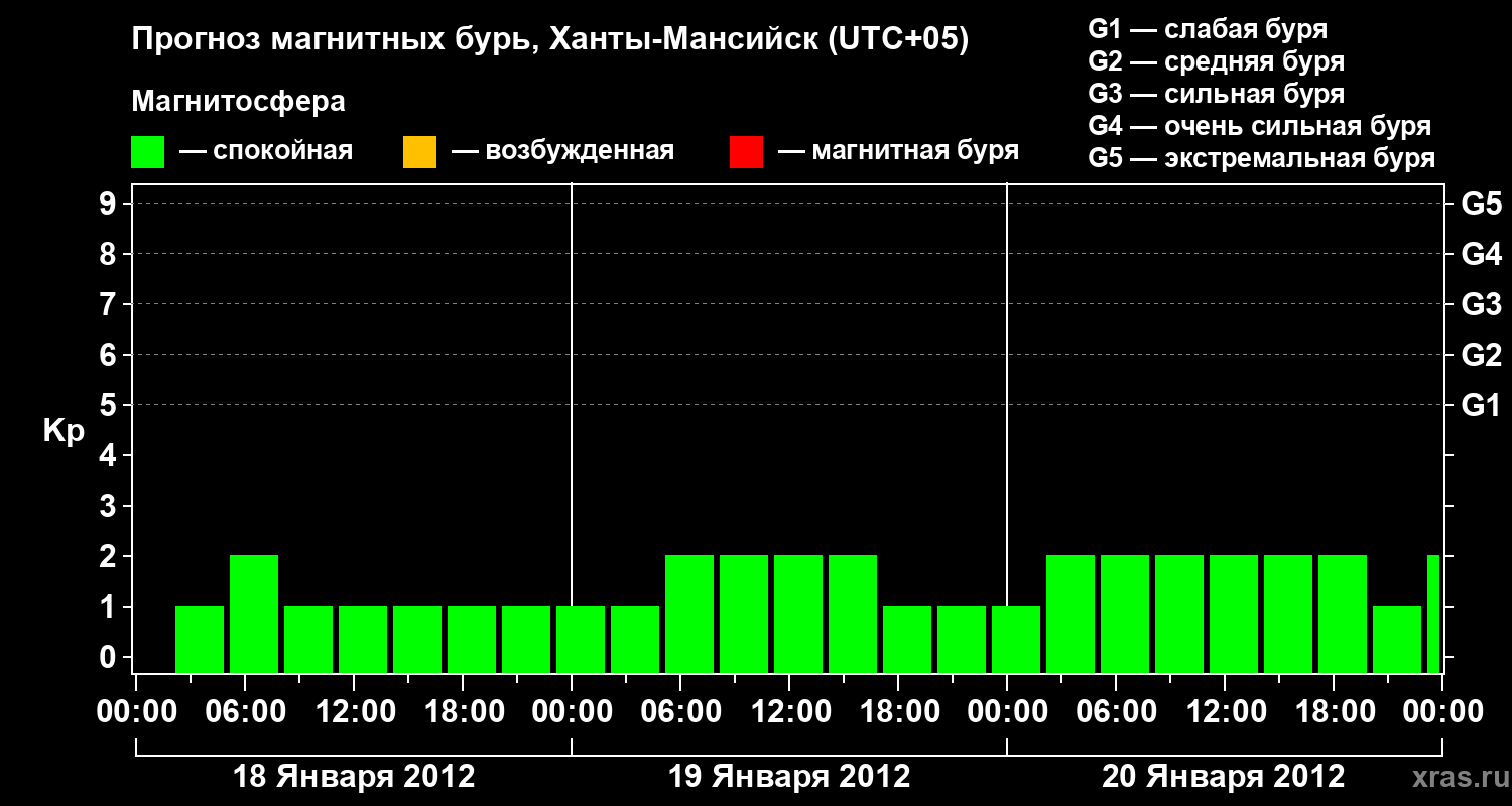 Прогноз магнитных бурь в Ханты-Мансийске — 18 января 2012 года