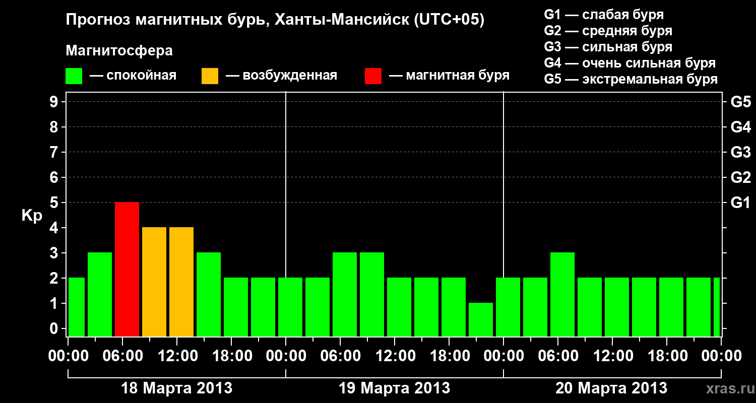 Прогноз магнитных бурь в Ханты-Мансийске — 18 марта 2013 года