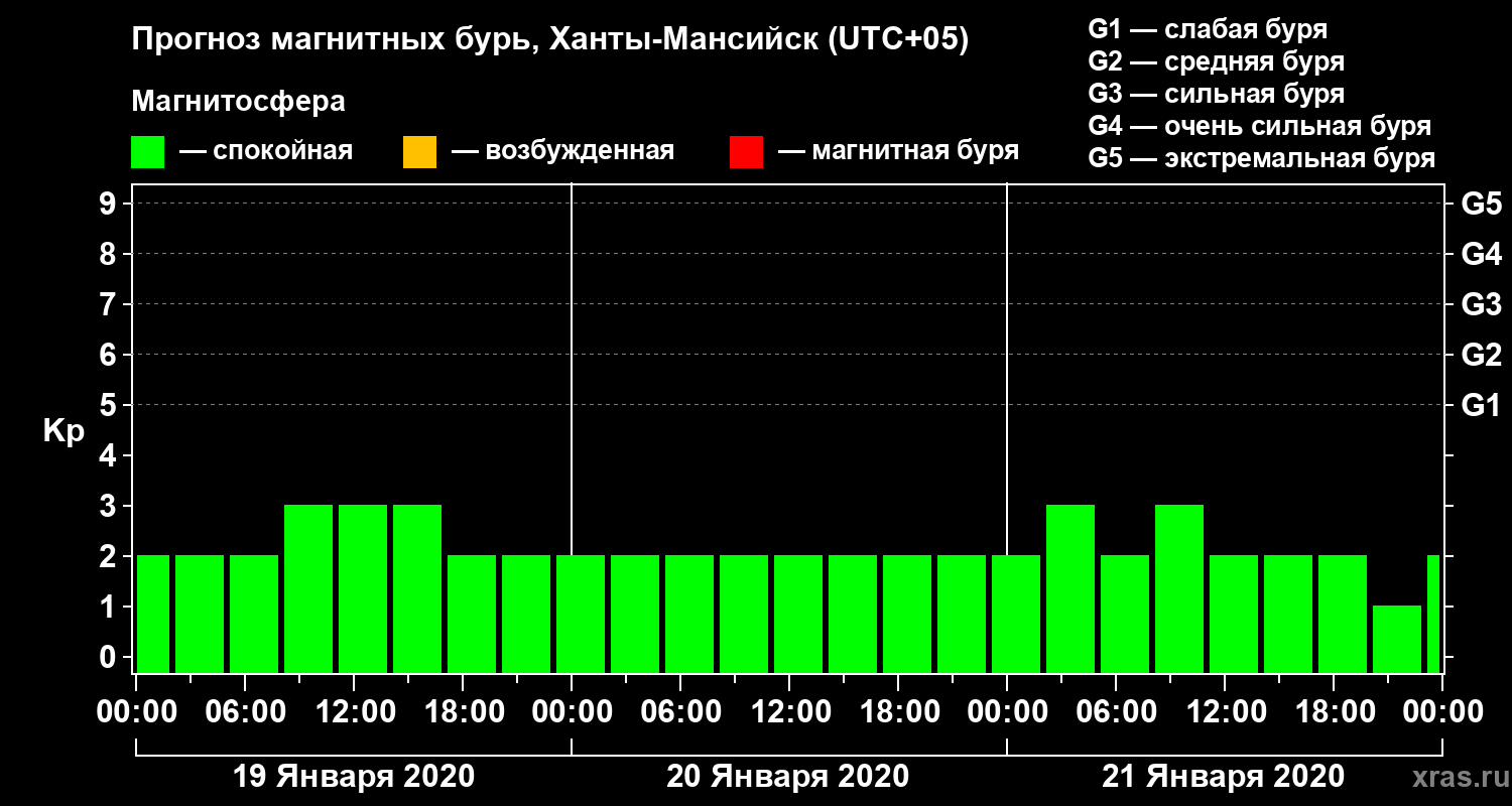 Прогноз магнитных бурь в Ханты-Мансийске на 19 января 2020 года