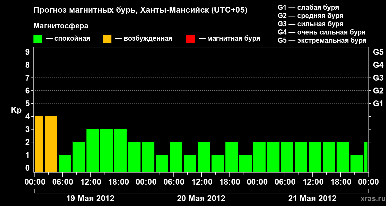 Прогноз магнитных бурь в Ханты-Мансийске — 19 мая 2012 года