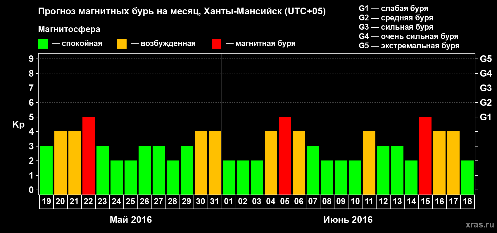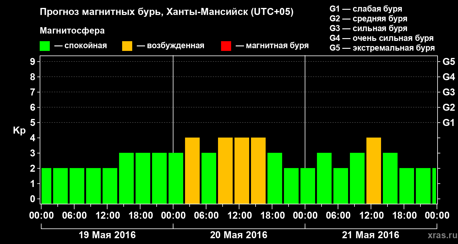 Прогноз магнитных бурь в Ханты-Мансийске на 19 мая 2016 года
