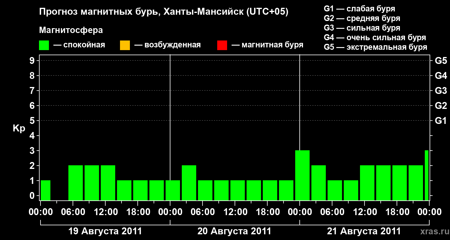 Прогноз магнитных бурь в Ханты-Мансийске на 19 августа 2011 года