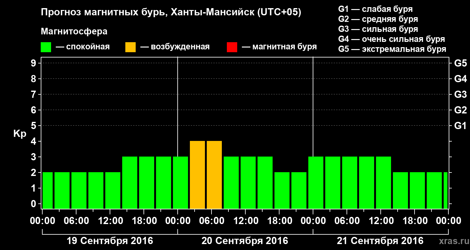Прогноз магнитных бурь в Ханты-Мансийске — 19 сентября 2016 года