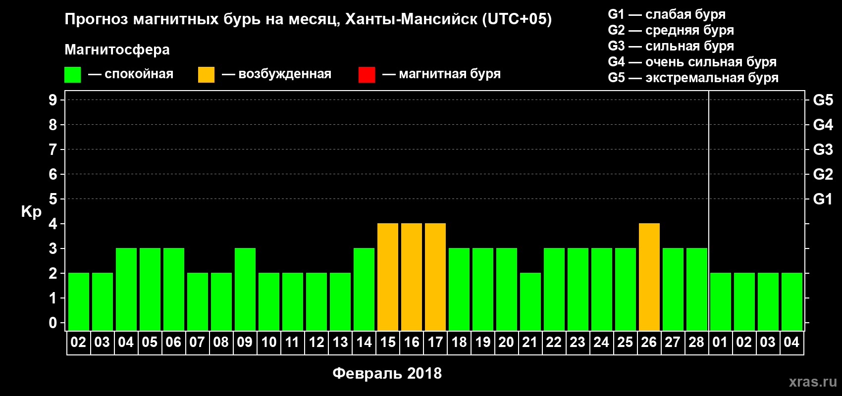 Прогноз магнитных бурь в Ханты-Мансийске на 2 февраля 2018 года