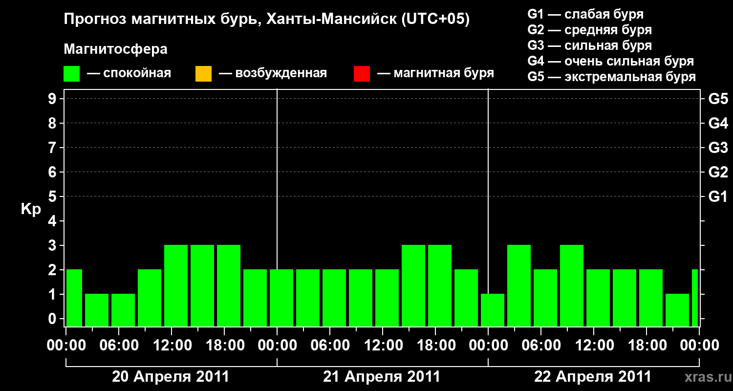 Прогноз магнитных бурь в Ханты-Мансийске — 20 апреля 2011 года