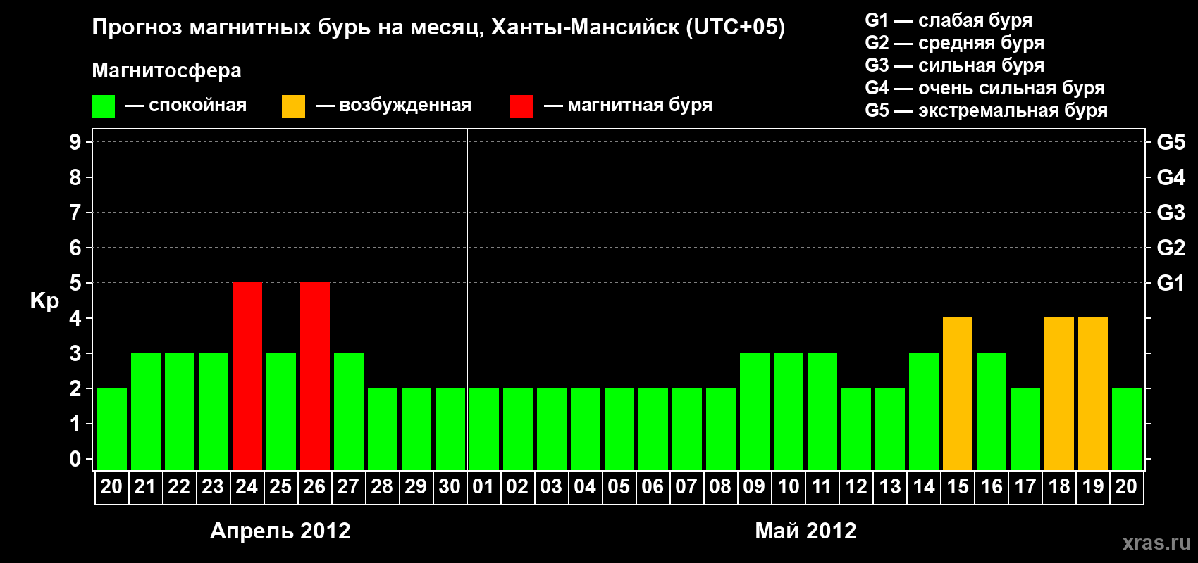 Прогноз магнитных бурь в Ханты-Мансийске на 20 апреля 2012 года
