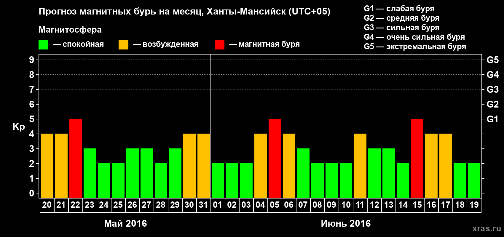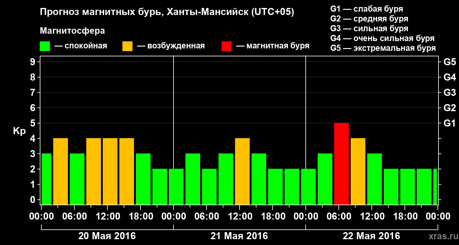 Прогноз магнитных бурь в Ханты-Мансийске — 20 мая 2016 года
