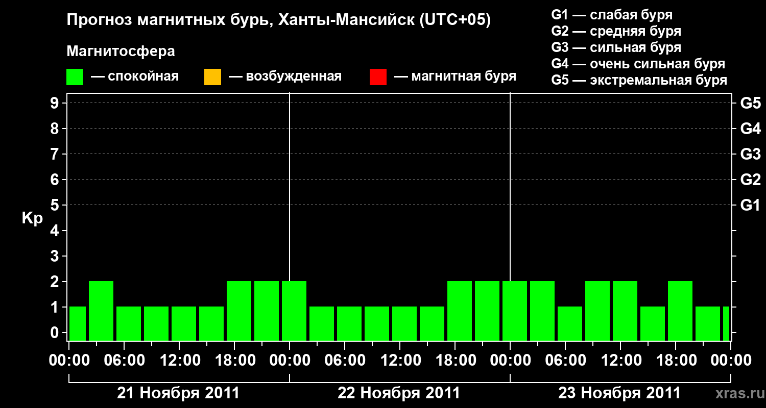 Прогноз магнитных бурь в Ханты-Мансийске — 21 ноября 2011 года