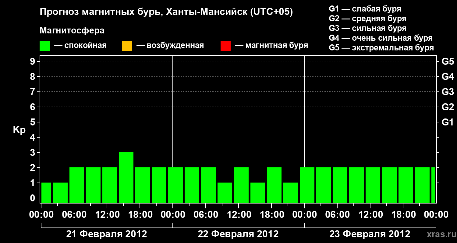 Прогноз магнитных бурь в Ханты-Мансийске — 21 февраля 2012 года