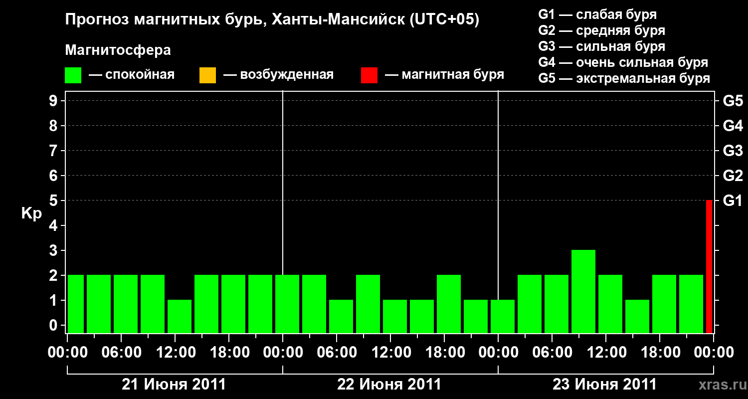 Прогноз магнитных бурь в Ханты-Мансийске — 21 июня 2011 года