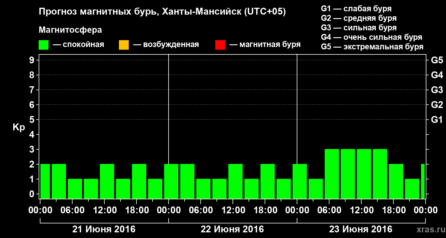 Прогноз магнитных бурь в Ханты-Мансийске — 21 июня 2016 года