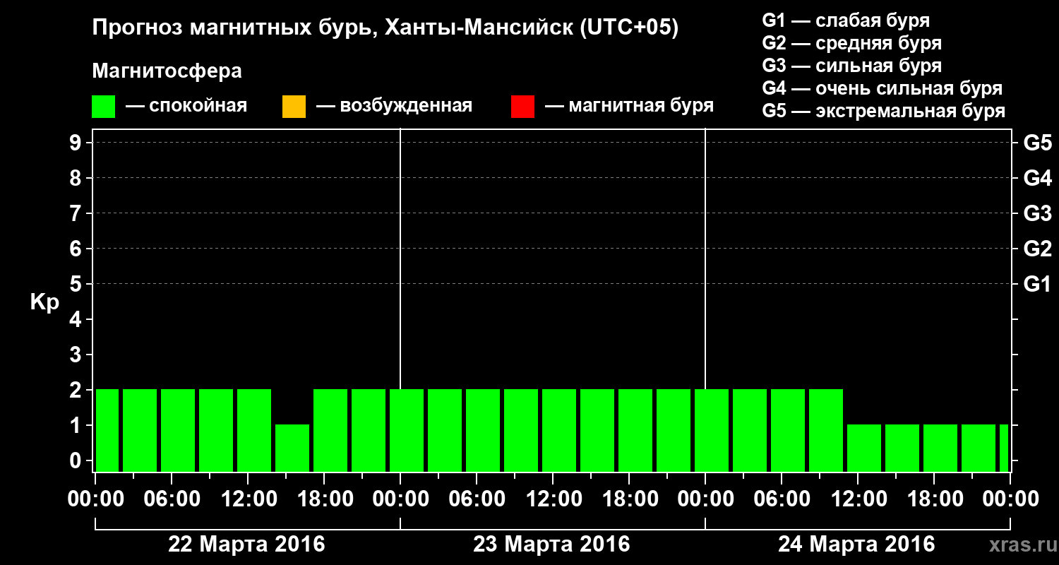 Прогноз магнитных бурь в Ханты-Мансийске — 22 марта 2016 года