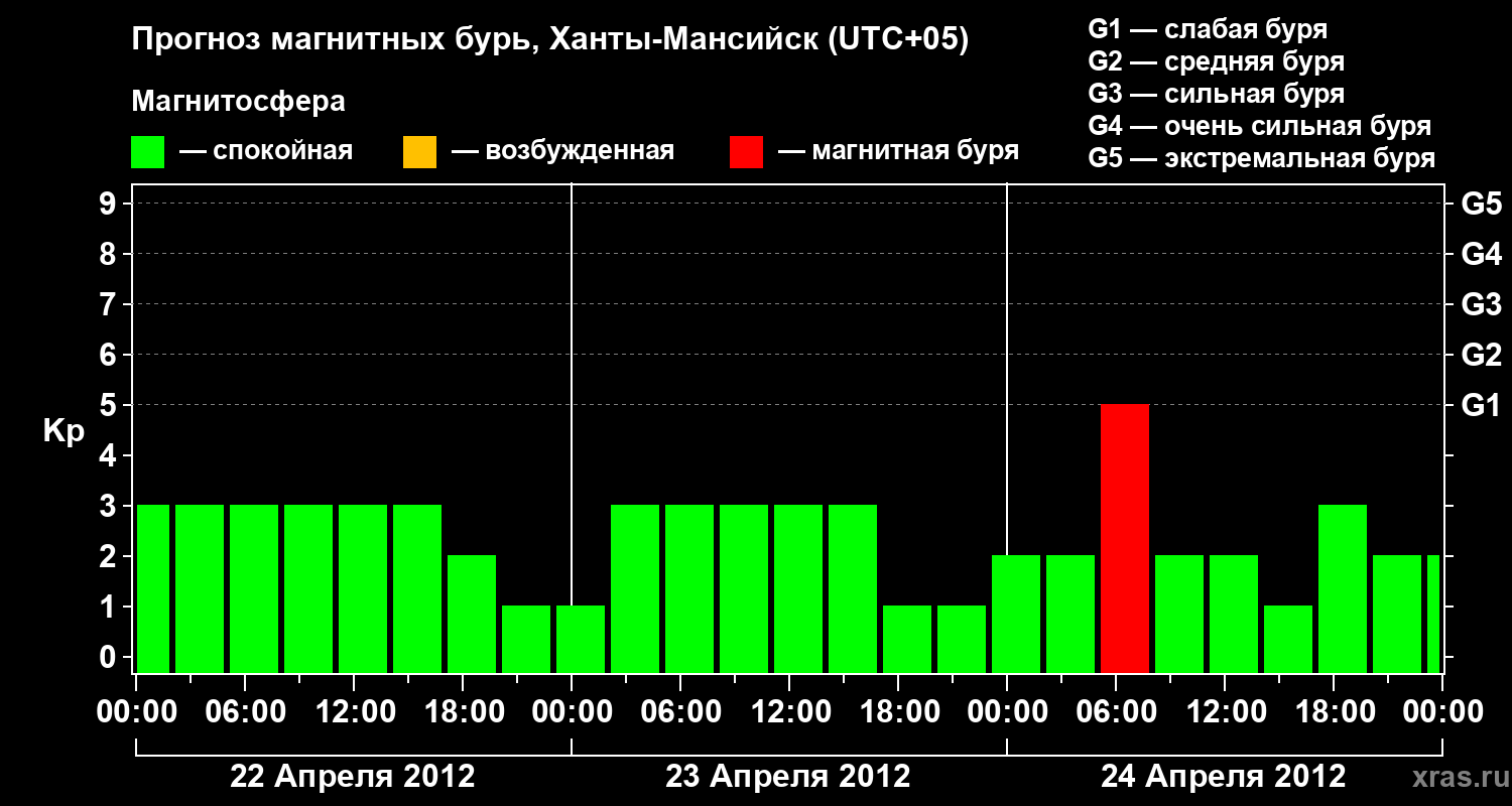 Прогноз магнитных бурь в Ханты-Мансийске на 22 апреля 2012 года